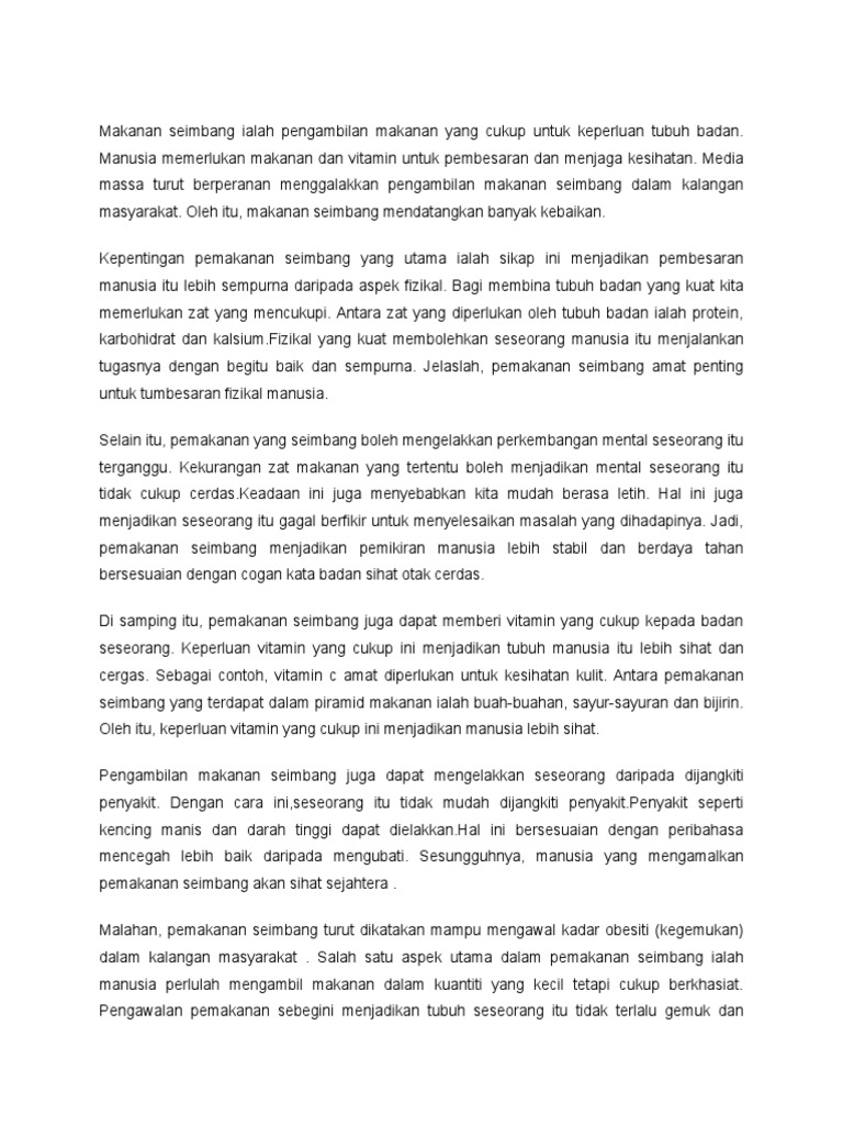 Karangan Menjalani Kehidupan Dengan Minda Yang Sihat Pdf Diet Sehat Makanan